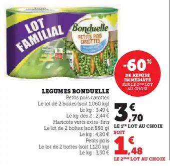 Le prix de l'offre Legumes bonduelle se trouve également en haut de la page, ainsi que la date à laquelle l'offre est disponible. Vous pouvez également vérifier les prix dans le Catalogue Super U actuel ou sur le site Internet de Super U. Les offres vous permettent d'acheter les produits Super U au prix le plus bas.