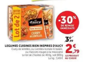Actuellement en offre chez Super U : LÉGUMES CUISINÉS BIEN INSPIRÉS “D’AUCY” ✅ Valable du 28-04 au 10-05.