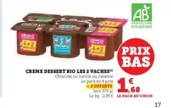 Y a-t-il une promotion sur LES 2 VACHES Creme dessert bio la semaine prochaine chez Super U ?