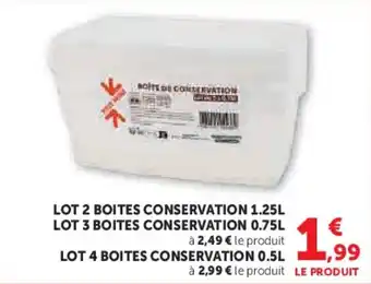Le prix de l'offre Lot 2 boites conservation se trouve également en haut de la page, ainsi que la date à laquelle l'offre est disponible. Vous pouvez également vérifier les prix dans le Catalogue Super U actuel ou sur le site Internet de Super U. Les offres vous permettent d'acheter les produits Super U au prix le plus bas.