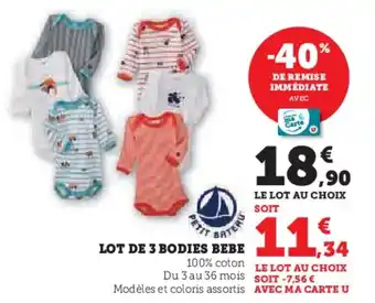 Lot de 3 bodies bebe : offres et promos Super U à découvrir
