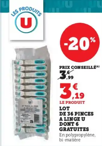 Offre Lot de 36 pinces a linge u gratuites chez Super U