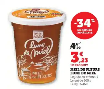 Actuellement en offre chez Super U : Lune de miel miel de fleurs ✅ Valable du 10-02 au 22-02.