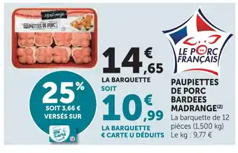 Actuellement en offre chez Super U : Madrange paupiettes de porc bardées ✅ Valable du 17-02 au 1-03.