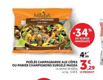 Actuellement en offre chez Super U : MAGDA Poêlée campagnarde aux cêpes ou panier champignons surgelé ✅ Valable du 24-02 au 8-03.