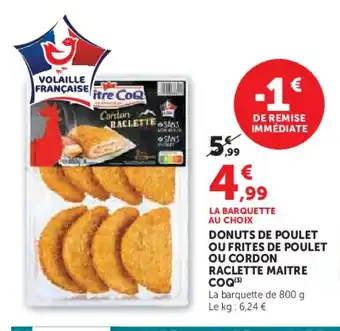 Offre MAITRE COQ Donuts de poulet ou frites de poulet ou cordon raclette chez Super U