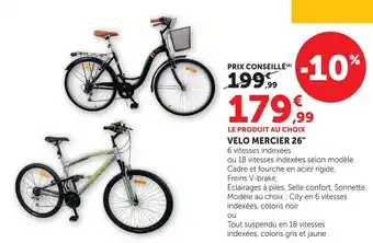 En plus de l'offre Mercier vélo 26 city, Super U propose une large gamme de produits. Consultez le Catalogue Super U hebdomadaire pour découvrir les meilleures offres et promotions. En plus de Mercier vélo 26 city, il y a aussi : Mercier vélo 26 city, VELO MERCIER 20 & VELO MERCIER 26.
