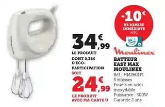 Actuellement en offre chez Super U : Moulinex - batteur easy max ✅ Valable du 20-01 au 1-02.