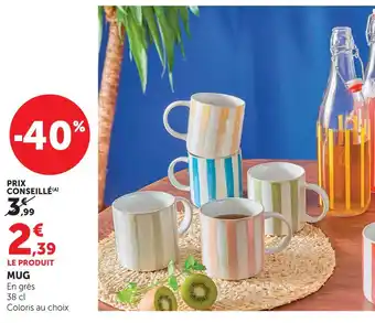 Le prix de l'offre Mug se trouve également en haut de la page, ainsi que la date à laquelle l'offre est disponible. Vous pouvez également vérifier les prix dans le Catalogue Super U actuel ou sur le site Internet de Super U. Les offres vous permettent d'acheter les produits Super U au prix le plus bas.