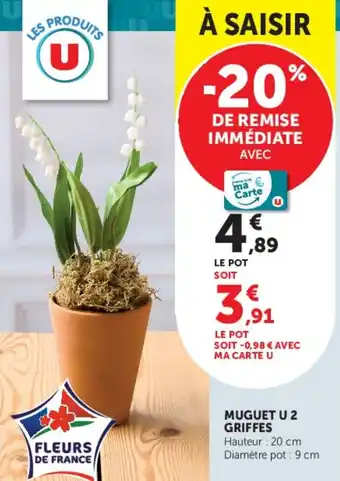 Actuellement en offre chez Super U : MUGUET U 2 GRIFFES ✅ Valable du 28-04 au 10-05.