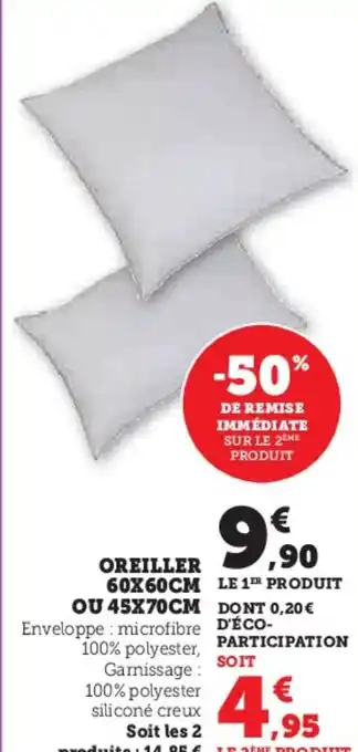 L'offre est disponible dans plusieurs magasins, vérifiez tous les produits pour obtenir le Oreiller le moins cher. Si vous souhaitez savoir si l'article est en vente avec une plus grosse remise dans un autre magasin, consultez la catégorie 'Supermarché'. Ces offres pourraient aussi vous intéresser : Oreiller 60x60cm ou 45x70cm, Oreiller 60x60cm ou 50x70cm & Oreiller.