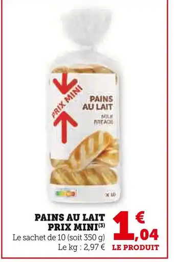 Le prix de l'offre Pains au lait se trouve également en haut de la page, ainsi que la date à laquelle l'offre est disponible. Vous pouvez également vérifier les prix dans le Catalogue Super U actuel ou sur le site Internet de Super U. Les offres vous permettent d'acheter les produits Super U au prix le plus bas.