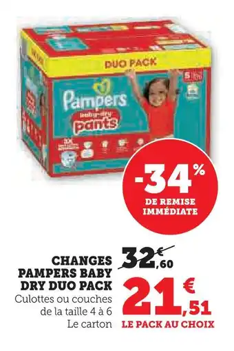 En plus de l'offre Pampers baby dry pants duo pack, Super U propose une large gamme de produits. Consultez le Catalogue Super U hebdomadaire pour découvrir les meilleures offres et promotions. En plus de Pampers baby dry pants duo pack, il y a aussi : Changes pampers baby dry duo pack, Changes pampers baby dry duo pack & Changes pampers baby dry duo pack.