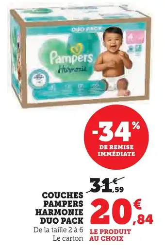 Pampers couches harmonie duo pack : offres et promos Super U à découvrir
