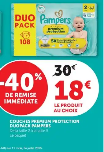 Offre PAMPERS Couches premium protection duopack chez Super U