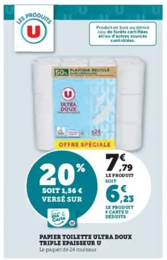 Le prix de l'offre Papier toilette ultra doux triple epaisseur u se trouve également en haut de la page, ainsi que la date à laquelle l'offre est disponible. Vous pouvez également vérifier les prix dans le Catalogue Super U actuel ou sur le site Internet de Super U. Les offres vous permettent d'acheter les produits Super U au prix le plus bas.