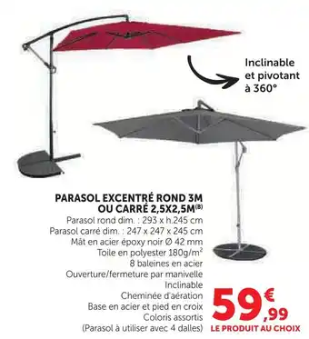 Offre Parasol excentré rond 3m ou carré 2,5x2,5m chez Super U