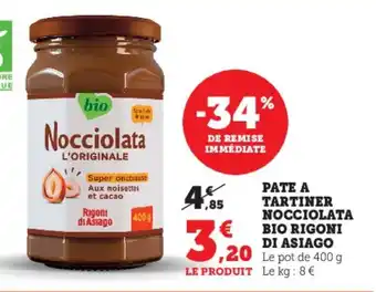 Pate a tartiner nocciolata bio rigoni di asiago : offres et promos Super U à découvrir