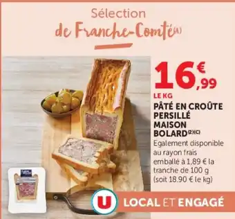 PÂTÉ EN CROÛTE PERSILLÉ MAISON BOLARD : offres et promos Super U à découvrir