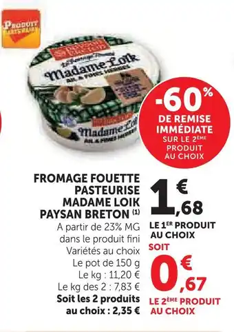 Actuellement en offre chez Super U : Paysan breton fromage fouetté pasteurisé madame loïk ✅ Valable du 10-03 au 22-03.