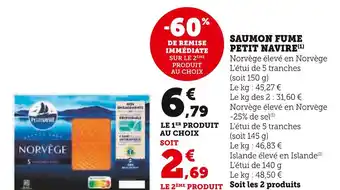 Le prix de l'offre Petit navire saumon fumé se trouve également en haut de la page, ainsi que la date à laquelle l'offre est disponible. Vous pouvez également vérifier les prix dans le Catalogue Super U actuel ou sur le site Internet de Super U. Les offres vous permettent d'acheter les produits Super U au prix le plus bas.