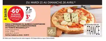 Actuellement en offre chez Super U : Pizza 4 fromages ou jambon champignons mozzarella ou chorizo poivron ou tomate mozzarell ✅ Valable du 21-04 au 3-05.