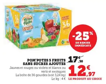 Actuellement en offre chez Super U : Pom'potes 5 fruits sans sucres ajoutes ✅ Valable du 27-01 au 8-02.
