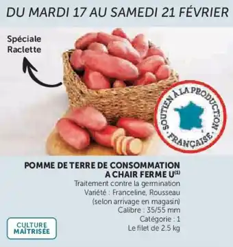 Actuellement en offre chez Super U : Pomme de terre de consommation a chair ferme u ✅ Valable du 17-02 au 1-03.