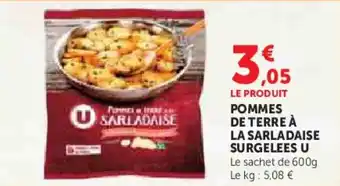 Actuellement en offre chez Super U : Pommes de terre à la sarladaise surgelees u ✅ Valable du 24-02 au 8-03.