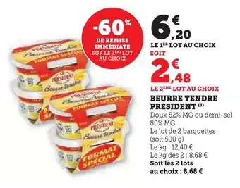 Le prix de l'offre President beurre tendre se trouve également en haut de la page, ainsi que la date à laquelle l'offre est disponible. Vous pouvez également vérifier les prix dans le Catalogue Super U actuel ou sur le site Internet de Super U. Les offres vous permettent d'acheter les produits Super U au prix le plus bas.