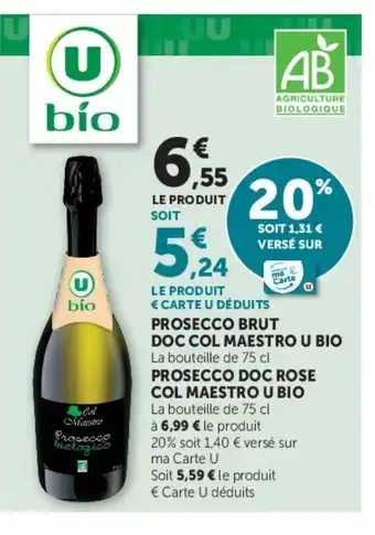 Prosecco brut doc col maestro u bio offres et promotions en ligne chez Super U