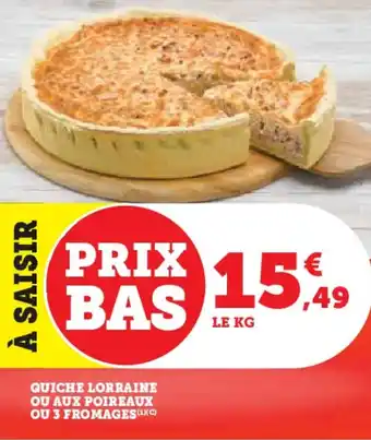 Actuellement en offre chez Super U : Quiche lorraine ou aux poireaux ou 3 fromages ✅ Valable du 6-01 au 18-01.
