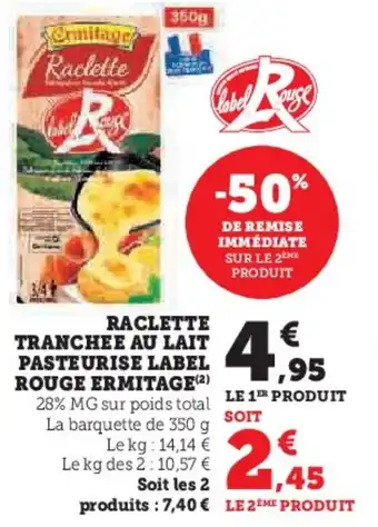 Le prix de l'offre Raclette tranchee au lait pasteurise label rouge ermitage se trouve également en haut de la page, ainsi que la date à laquelle l'offre est disponible. Vous pouvez également vérifier les prix dans le Catalogue Super U actuel ou sur le site Internet de Super U. Les offres vous permettent d'acheter les produits Super U au prix le plus bas.
