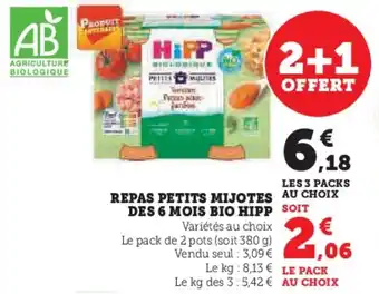 Actuellement en offre chez Super U : Repas petits mijotes des 6 mois bio hipp ✅ Valable du 6-01 au 18-01.
