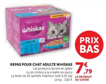 Actuellement en offre chez Super U : Repas pour chat adulte whiskas ✅ Valable du 17-02 au 1-03.