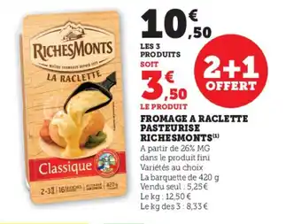 Actuellement en offre chez Super U : RICHESMONTS Fromage a raclette pasteurise ✅ Valable du 20-01 au 1-02.