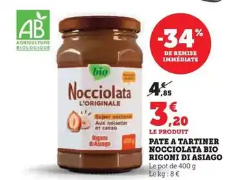 Rigoni di asiago - pate a tartiner nocciolata bio : offres et promos Super U à découvrir