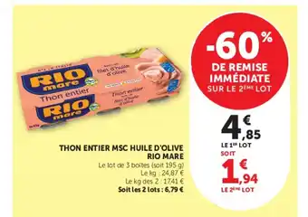 RIO MARE Thon entier msc huile d'olive offres et promotions en ligne chez Super U