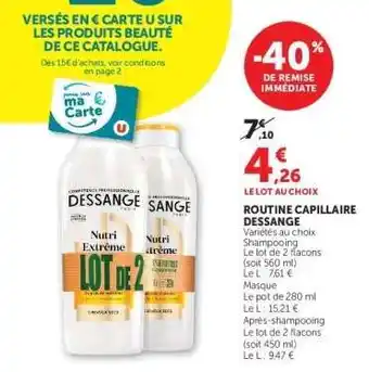 Actuellement en offre chez Super U : ROUTINE CAPILLAIRE DESSANGE ✅ Valable du 8-04 au 19-04.