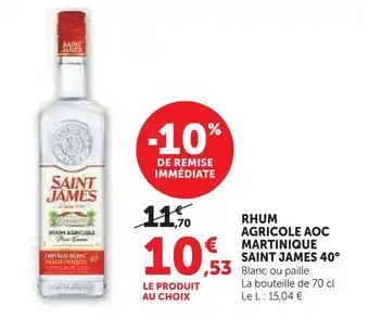 Offre Saint james 40° rhum agricole aoc martinique 40° chez Super U
