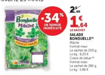 Le prix de l'offre Salade bonduelle se trouve également en haut de la page, ainsi que la date à laquelle l'offre est disponible. Vous pouvez également vérifier les prix dans le Catalogue Super U actuel ou sur le site Internet de Super U. Les offres vous permettent d'acheter les produits Super U au prix le plus bas.