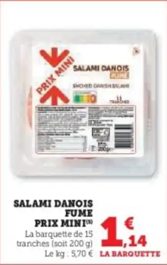 Actuellement en offre chez Super U : Salami danois fume prix mini ✅ Valable du 27-12 au 4-01.