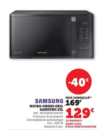 Actuellement en offre chez Super U : SAMSUNG Micro-ondes gril ✅ Valable du 20-01 au 8-02.