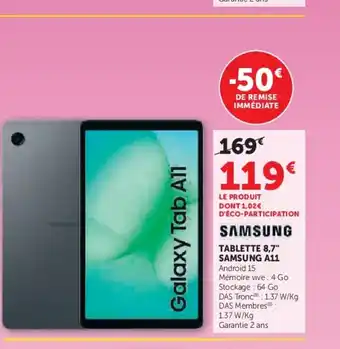 SAMSUNG Tablette 8,7" a11 : offres et promos Super U à découvrir