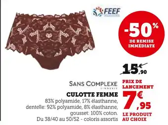 Sans complexe culotte femme : offres et promos Super U à découvrir