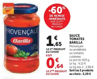 En plus de l'offre Sauce tomates barilla, Super U propose une large gamme de produits. Consultez le Catalogue Super U hebdomadaire pour découvrir les meilleures offres et promotions. En plus de Sauce tomates barilla, il y a aussi : Sauce tomates barilla, Barilla - sauce provençale 100% tomates italiennes & Barilla sauce pesto.