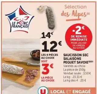Offre Saucisson Sec 'Salaisons Peguet Savoie' chez Super U