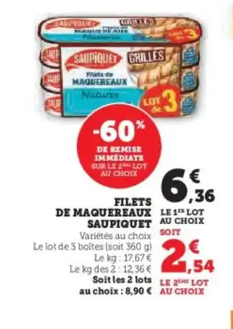 Le prix de l'offre SAUPIQUET Filets de maquereaux se trouve également en haut de la page, ainsi que la date à laquelle l'offre est disponible. Vous pouvez également vérifier les prix dans le Catalogue Super U actuel ou sur le site Internet de Super U. Les offres vous permettent d'acheter les produits Super U au prix le plus bas.