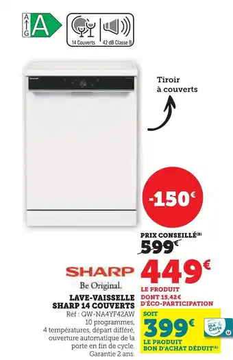 Actuellement en offre chez Super U : SHARP Lave-vaisselle 14 couverts ✅ Valable du 20-01 au 8-02.