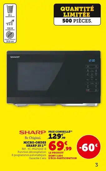 Actuellement en offre chez Super U : Sharp micro-ondes 25 l ✅ Valable du 30-12 au 11-01.